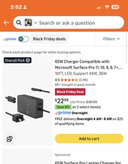 65W Charger Compatible with Microsoft Surface Pro 11, 10, 9, 8, 7+ 10FT, LED, Support 44W, 36W$15Great Nck Plz, NY