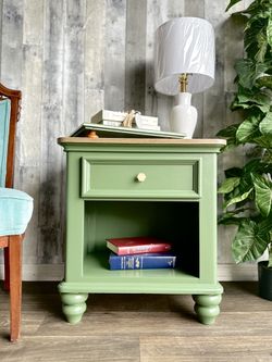 🌺 Newly Refinished Solid Wood Single Nightstand/ Sage Green/ Details Below/ I Can Deliver $89Orlando, FL