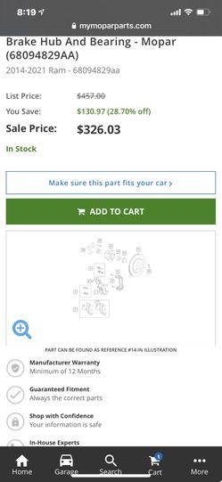 Brake Hub And Bearing - Mopar 2014-2021 Ram - (contact info removed)9aa$80Miami, FL