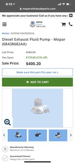 Diesel Exhaust Fluid Pump - Mopar Part Number In Picture$80Miami, FL