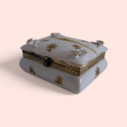 MC Ardalt Japan White/Gold Porcelain Raised Roses Hinged Lid Jewerly Box.$65Las Cruces, NM