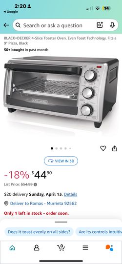 BLACK+DECKER 4-Slice Toaster Oven, Even Toast Technology, Fits a 9" Pizza, Black$20Temecula, CA