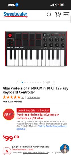 Akai Professional MPK Mini MK III 25-key Keyboard Controller$45Temecula, CA