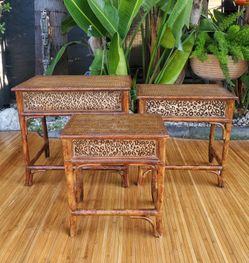 Vintage bamboo rattan leopard nesting tables $299Alhambra, CA