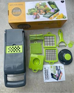 Vegetable Chopper and Slicer Set, 14 Pieces, Multi-Function Kitchen Mandoline with Interchangeable Blades, 13.2 x 4.9 x 3.9 inches, Gray/Green$9La Habra Heights, CA