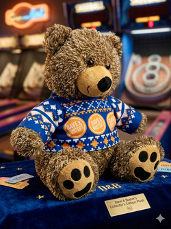 Dave and Buster's Toy Factory Ugly Sweater Brown Bear 16" Plush Toy Orange Blue$12Rialto, CA