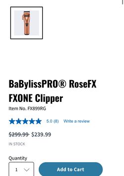 BaBylissPRO® RoseFX FXONE Clipper Item No. FX899RG Release Battery Rose Gold New In Box PAID $299 New From Babyliss$150Hialeah Gardens, FL