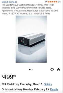 JUPITER 5,000 Watt Continuous/10,000 Watt Peak Modified Sine Wave Power Inverter NEW PRICE $499 Amazon$200Hialeah Gardens, FL