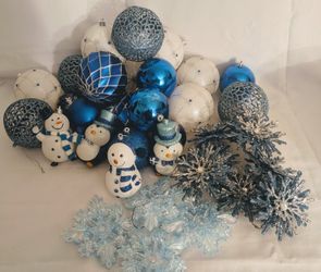 Blue Christmas Tree Ornaments Snowflakes Snowman Balls $10Bakersfield, CA