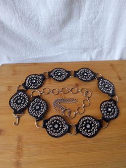 CHAIN BELT RIVET & RHINESTONE STUDDED LEATHER LINK SILVER TONE METAL EXTENDER ADJUSTABLE SIZE 36L (36"-42") Western Rock Vintage Excellent Condition$30Miami, FL