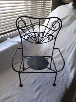 PLANT STAND DISPLAY CHAIR BLACK WROUGHT IRON 17" TALL VINTAGE VICTORIAN STYLE Metal Circular Seat Plate, Scroll Back, Arm Rests, Excellent Condition$30North Miami Beach, FL