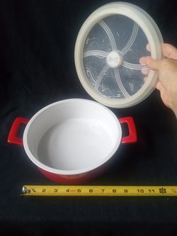 CASSEROLE DISH RED WOLFGANG PUCK STONEWARE with Microwavable Vented Plastic Lid 9" Round 2-Quart Excellent Condition$20Miami, FL