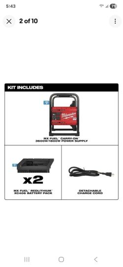 Milwaukee MX FUEL Carry-On Lithium-Ion 3600W/1800W Power Supply Power Supply with Battery STORE PRICE $2199$1,750Glendora, CA