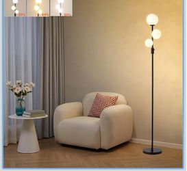 OUTON Modern Floor Lamp, 3 x 3000K Warm Light LED Bulbs Included, Matt Black Standing Lamp with Sphere Glass Shade, Vintage Tall Lamp for Living Room,$30Dallas, TX