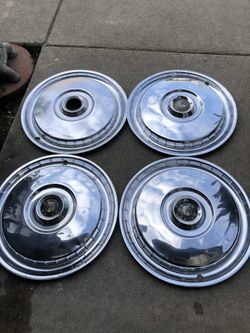 set of four vintage, 15-inch chrome hubcaps for the 1955–1956 Ford Fairlane and Thunderbird models. $150Irwindale, CA