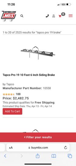 Tapco Pro 19. 10’6”” Siding Brake$2,200New Franklin, OH