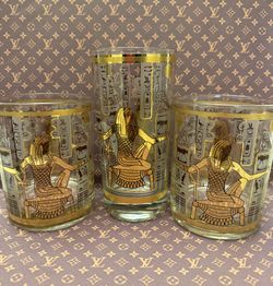 CULVER Set of 3 Egyptian Pharoah Double Old Fashioned 22K Gold & Etched Glass$90Westchester, CA