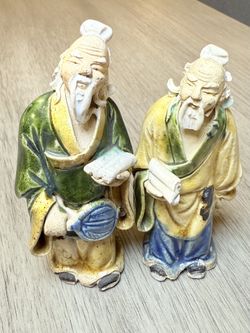 Lot Of 2 Antique Chinese Majolica Mudman Mudmen Figurines Green Robe & Yellow$35Los Angeles, California