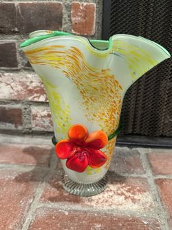 Ruffle Splatter Art Glass Vase with fused Red Glass Flower$60Los Angeles, California