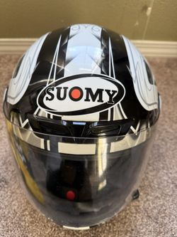 Suomy Full Face Motorcycle Helmet DOT Certified Black Silver Graphic Racing Helmet Size L with Original Bag$200Redlands, CA