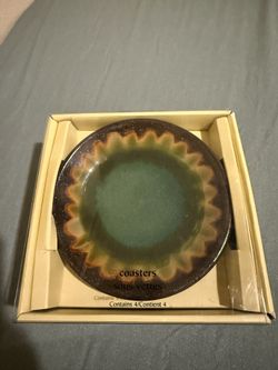 Pier 1 Imports Ceramic Coasters Set of 4 Green Brown Reactive Glaze With Box$38Redlands, CA