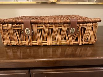 Vintage Wicker Picnic Basket with Leather Straps Turn Lock Rustic Cottage Farmhouse Decor$70Redlands, CA