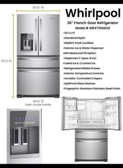 Whirlpool 36" 25 Cu Ft Standard Depth French Door Refrigerator$1,349Glendora, CA