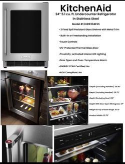 KitchenAid 24" 5.1 Cu Ft Undercounter Refrigerator in Stainless Steel$974Glendora, CA