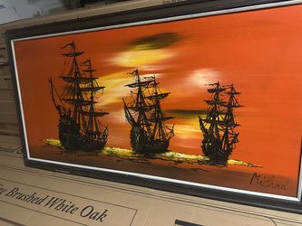 VANGUARD STUDIOS 1960'S MID CENTURY PIRATE SHIP PAINTING DRIP ART 52"X28"$400Visalia, CA