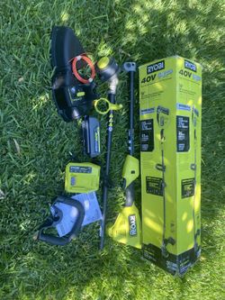 RYOBI ONE+ 18V Cordless Battery String Trimmer/Edger and Jet Fan Blower Combo Kit (2-Tools) with (2)4.0 Batteries 2.0 and Charger$100Rialto, CA