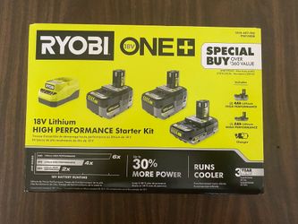 RYOBI ONE+ 18V Lithium-Ion HIGH PERFORMANCE Starter Kit with 2.0 Ah Battery, (2) 4.0 Ah Batteries, and Charger$135Rialto, CA
