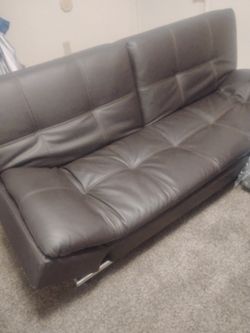 Dark Brown Leather Futon With Charging Ports Has A Little Wrinkle In Center But not Ripped It's From Another Couch Being In Top Of It$300Madera, CA