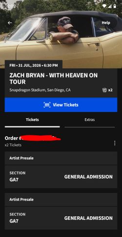 2 Zach Bryan Pit Tickets 7/31$600San Diego, CA