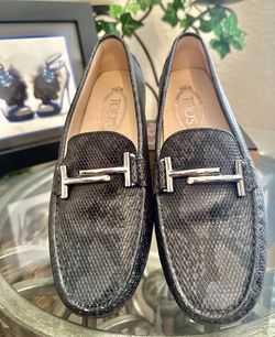 TOD'S Gommino Sliver Double T Leather Python Snake Effect Driving Slip On Shoes US 8 38$495Scottsdale, AZ