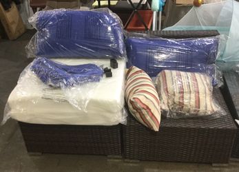 2 seats brown Wicker middle sofa with royal Blue Cushion$120South El Monte, CA