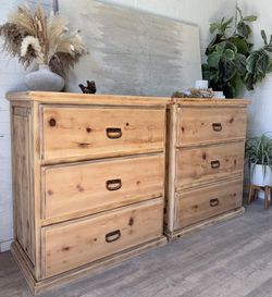 Vintage Solid Wood Bedroom Set,Lowboy Dresser 9 Drawer and 2 matching Nightstands Natural Modern$1,195Seattle, WA