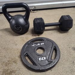 25 LB STEEL HEX DUMBBELL, 10 LB STEEL OLYMPIC PLATE, 10 LB KETTLE $60Milwaukee, WI