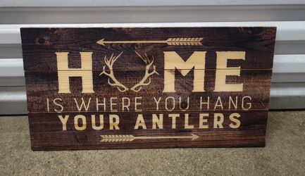 HOME IS WHERE YOU HANG YOUR ANTLERS WOOD SIGN