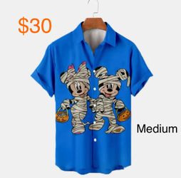 $20 NEW MENS DISNEY HALLOWEEN MUMMY MICKEY MINNIE BLUE HAWAIIAN STYLE BUTTON UP SHIRT SIZE MEDIUM MEN’S$20Ontario, CA