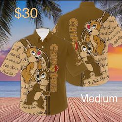 $30 NEW MENS WOMENS UNISEX DISNEY WORLD DISNEYLAND CHIP & and DALE FALL AUTUMN HAWAIIAN STYLE BUTTON UP SHIRT SIZE MEDIUM MEN’S $30Ontario, CA