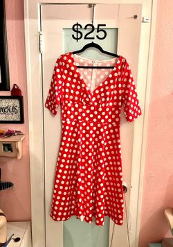 $25 NEW MINNIE MOUSE DOTS DRESS WOMENS WOMANS ADULT LADIES MEDIUM PIN UP PINUP RETRO COSTUME DISNEY DISNEYLAND RED WHITE POLKA DOT $25Ontario, CA