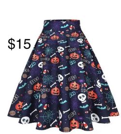 $15 HALLOWEEN A LINE WOMENS WOMANS SKIRT BLACK GREEN PURPLE ORANGE PARTY COSTUME OFFICE WORK SPOOKY EEK PUMPKIN SIZE MEDIUM LARGE M PINUP SKULL NEW$15Ontario, CA