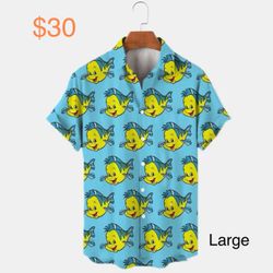 $30 NEW MENS XXL MEDIUM DISNEY FLOUNDER FISH BLUE LITTLE MERMAID MENS HAWAIIAN STYLE BUTTON UP SHIRT SIZE LARGE MEN’S DISNEYLAND WORLD VACATION$30Upland, CA