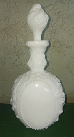 Vintage Fostoria Jenny Lind Milk Glass Cologne Bottle Ornate Floral Stoppered Decanter made between 1(contact info removed).$30Ocala, FL