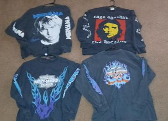 3 Piece Left. Modern Reprint AOP Long Sleeves (Rage Against The Machine, Nirvana & Harley Davidson). All new without tags (NWOT). $50Stockton, CA