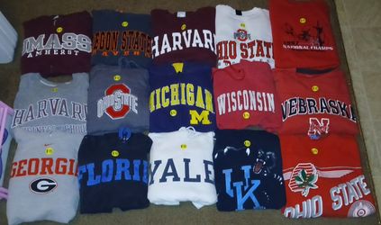 15 Piece College Crew Neck Sweater & Full Zip Hoodie Bundle. Modern and Vintage (all different sizes). $225Stockton, CA