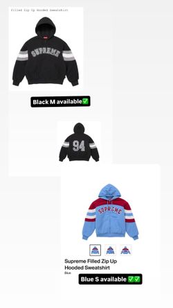 Supreme SS26’ week 1 Supreme Filled Zip Up Hooded Sweatshirt Blue S, Black M$300Plainview, NY