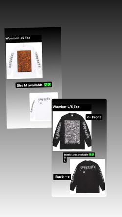 Supreme SS26’ week 1 Wombat L/S Tee Black S L, white Medium$85Westbury, NY