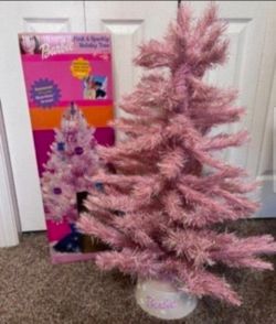 Vintage Barbie Sparkly Pink Iridescent Christmas Holiday Tree W/ Handmade DIY Ornaments $100South Gate, CA