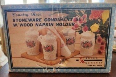 Country Rose 🌹 Stoneware Condiment Set With Wood Napkin Holder$35South Gate, CA